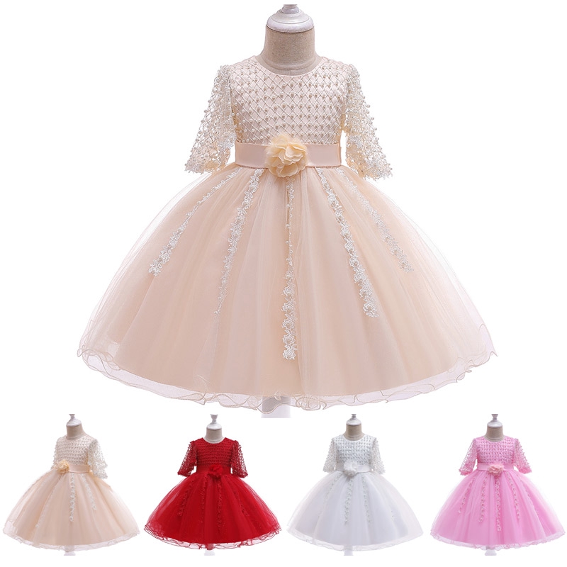 2020 2019 Summer Girls Clothes Pearl Floral Lace Wedding Dress Beaded Children Christmas Clothing Kids Party Dress Baby Girls Princess Dress From Zhangxiuhuazl 19 09 Dhgate Com