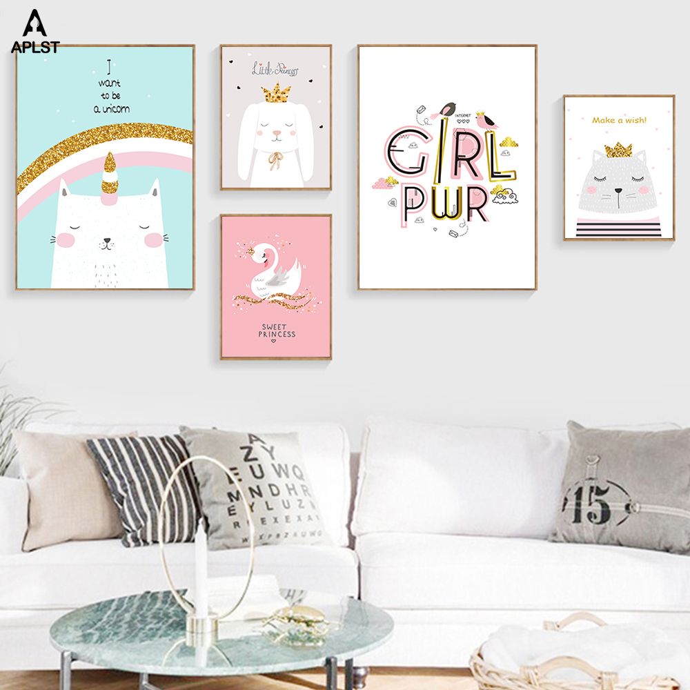 Baby Kids Girl's Room Decoration Love My Princess Canvas Prints & Poster Cartoon Rabbit Wall Paintings Picture Nursery Decals|Painting & Calligraphy| - AliExpress